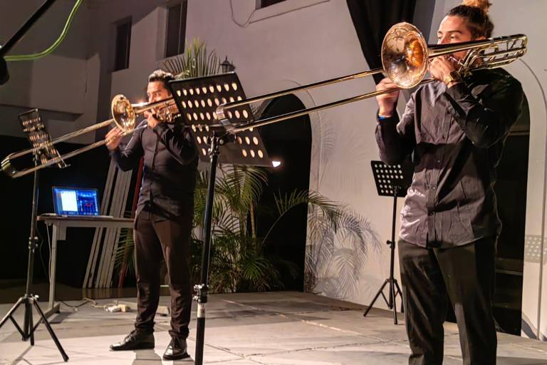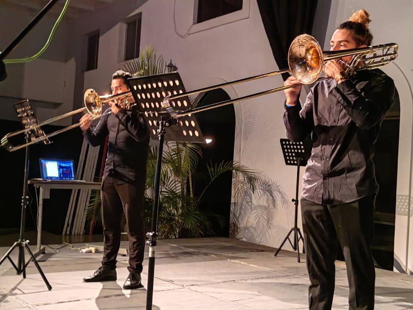 La grata velada dio inicio con Invention 13 de J. S. Bach, interpretada por dicho grupo de cámara conformado por dos hermanos trombonistas nacidos en Venezuela, que se dedican a hacer combinaciones de ritmos a través del país americano.