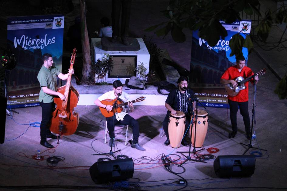 La velada seguía y los estudiantes de la Licenciatura en Música, de la Unidad Académica de Artes interpretaron también Sin ti, del Trío Los Panchos, La gloria eres tú, del compositor de origen cubano José Antonio Méndez, así como Franqueza, de la compositora mexicana Consuelo Velázquez.