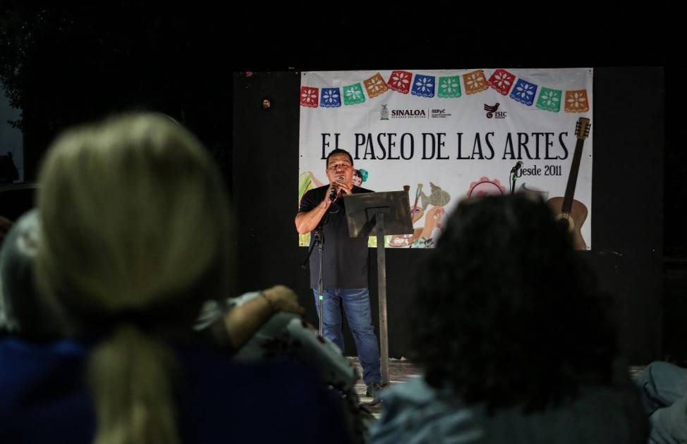 Con una gran afluencia de público se reanudó el Paseo de las Artes, en el callejón Andrade de Culiacán, donde participaron poetas y cantantes de la ciudad, así como artesanos y creadores, bajo la conducción del maestro José Alfonso Flores Carrasco.