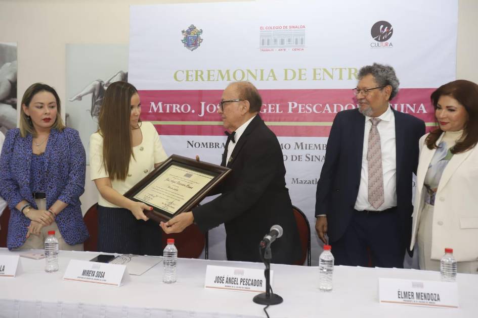 MAZATLÁN._ El maestro José Ángel Pescador Osuna fue distinguido como Miembro Emérito de El Colegio de Sinaloa, en reconocimiento a su trayectoria educativa, intelectual y de servicio público.