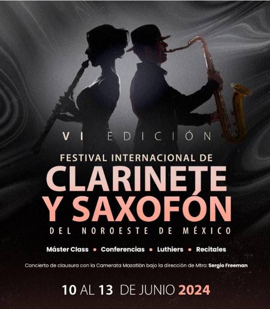Festival Internacional de Clarinete y Saxofón del Noroeste de México, que se desarollará en Mazatlán hasta el 13 de junio traerá diversas actividades, como conciertos, recitales, conversatorios y clases maestras, en el Teatro Ángela Peralta así como en el Centro Municipal de las Artes.