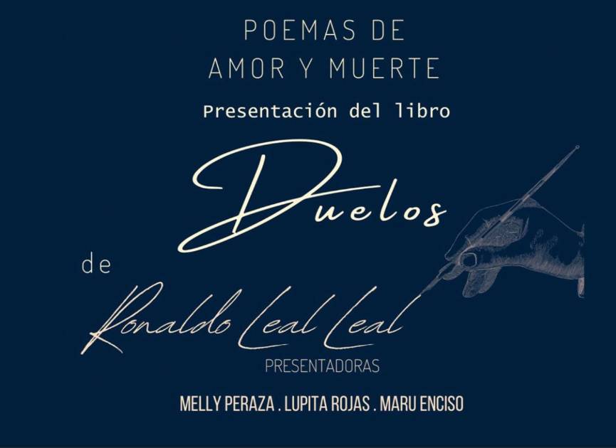 La obra literaria “Duelos, Poemas de Amor y Muerte”, escrita por el profesor Ronaldo Leal será presentada este viernes 31 de mayo en la Galería Ángela Peralta a las 17:00 horas, donde las poetas Melly Peraza, Lupita Rojas y Maru Enciso tendrán el honor de comentar los detalles en este evento.