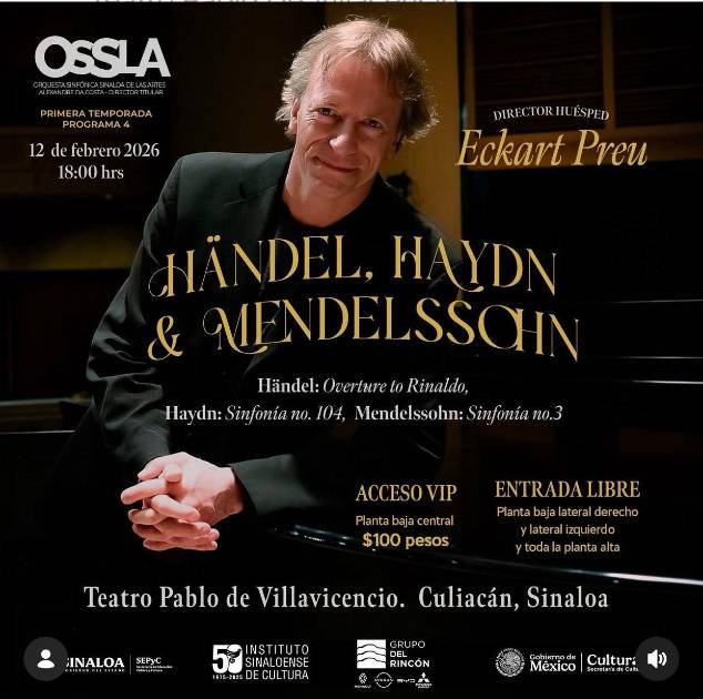 La Orquesta Sinfónica Sinaloa de las Artes recibirá este jueves 12 de febrero, a las 18:00 horas en el teatro Pablo de Villavicencio, al director alemán Eckart Preu, quien dirigirá en un concierto que promete una experiencia musical de gran profundidad artística, con un programa que recorre distintos momentos clave del repertorio sinfónico europeo.