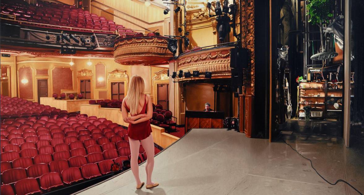 Una obra reciente. No, no es una foto. La rubia de espaldas ¿qué te dice su lenguaje corporal, sus brazos detrás cruzados? Le preguntaba a Max, lo conozco hace 8 años, que clase de audición es esa donde ella acude vestida de esa forma ¿bailarina? Él se asoma en el piano, sus miradas convergen electrizando el ambiente.