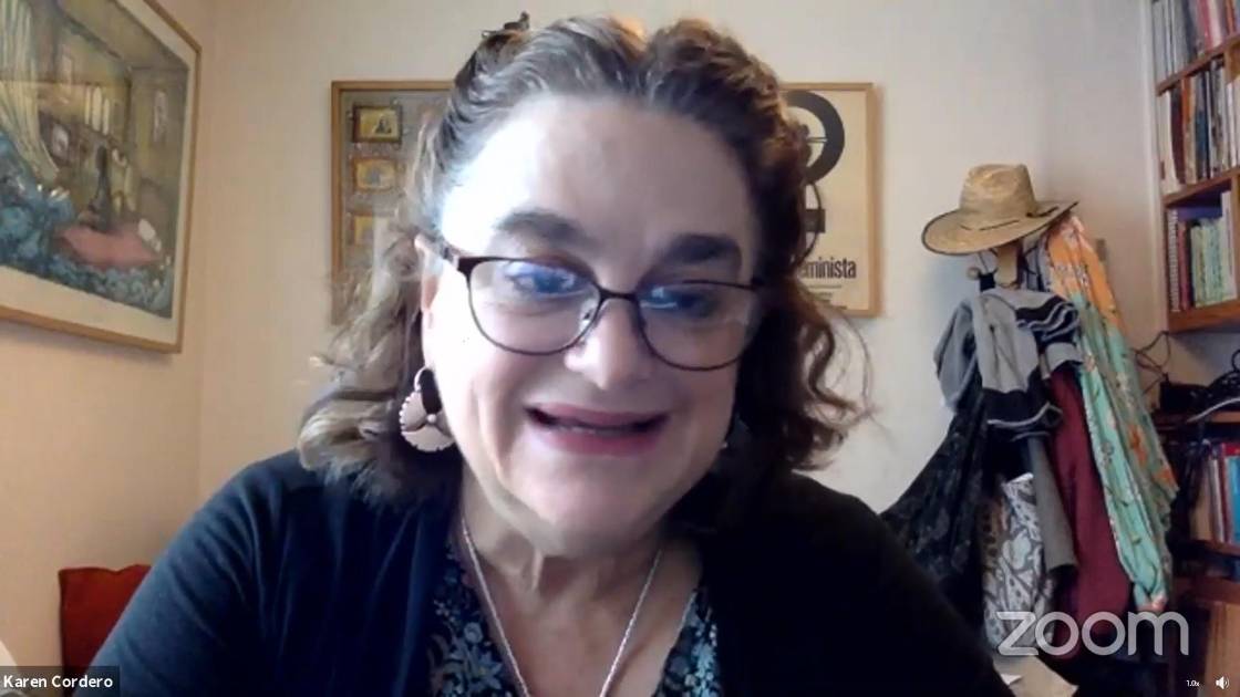 Al inicio de su charla, llevada a cabo a través de la plataforma Zoom y transmitida vía Facebook, recordó en 2016, cuando justo después de hacer una exposición en el MUAC, la invitaron a Sinaloa a impartir un curso de arte feminista, cuando Mónica Mayer hizo un tendero.