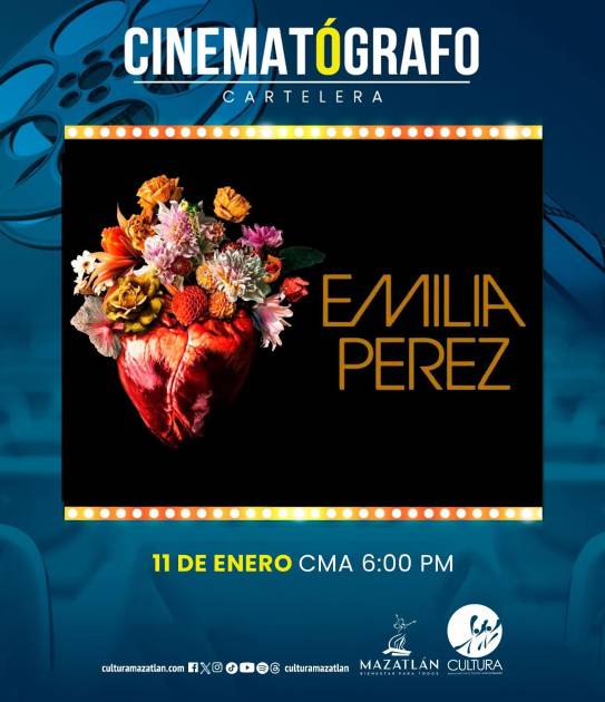 De estreno estará el Cinematógrafo del Centro Municipal de las Artes “Marco Lugo” este sábado 11 de enero a las 18:00 horas, con la proyección de “Emilia Pérez”, película dirigida por Jacques Audiard, aclamada por la crítica, ganadora de varios Globos de Oro, y nominada a diversos premios en festivales en Europa como Cannes, y en América en los Globos de Oro, entre otros.