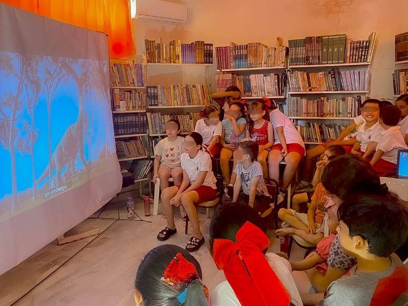 - Proyección de cine: Complementada con preguntas interactivas como “¿Qué harías si estuvieras en la era jurásica?” y “¿Qué encontré como explorador?”, estimulando la imaginación y el pensamiento crítico.
