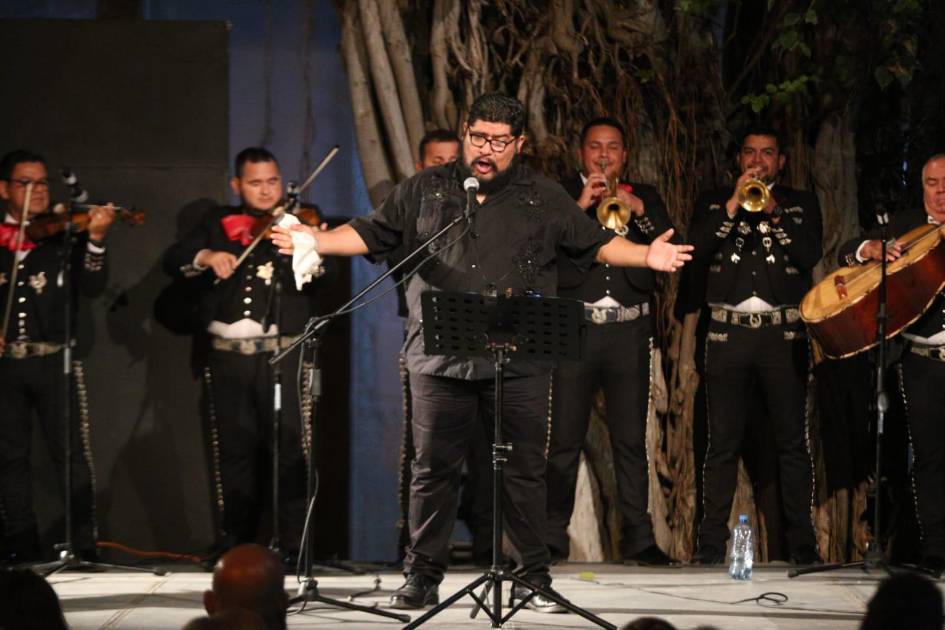 Teniendo como marco el emblemático árbol del recinto cultural de la Venustiano Carranza y arropado por el viento y las estrellas, el cantante deleitó con un gran repertorio de melodías mazatlecas, sinaloenses y muy mexicanas a los asistentes.