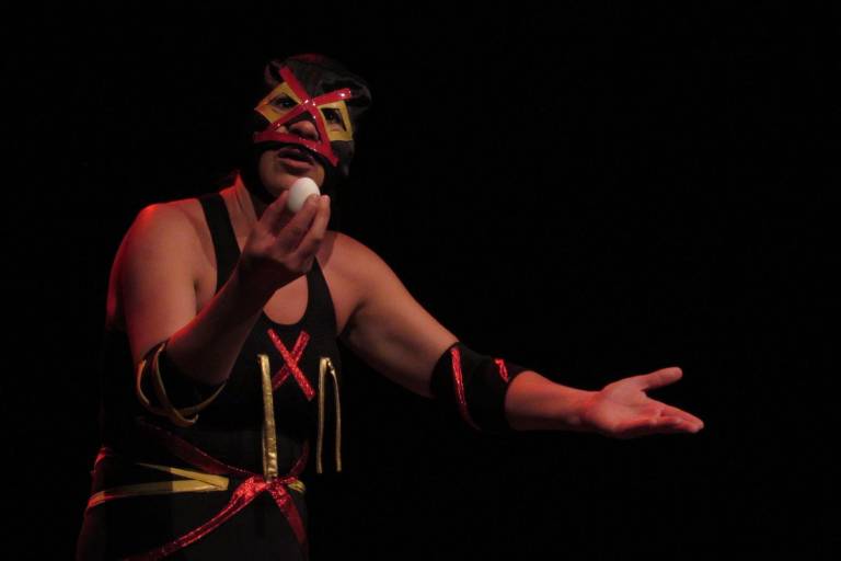 Uno de los elementos más potentes de D(r)ama es la incorporación del lenguaje de la lucha libre mexicana.