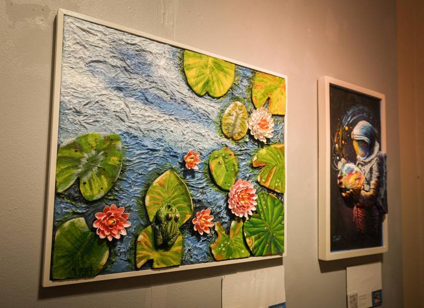 En la muestra, los asistentes pueden recorrer un abanico de obras que revelan la fuerza de la imaginación y el talento más allá de cualquier limitación física. Desde escenas que evocan la espiritualidad hasta composiciones llenas de color y vida, cada pieza transmite la voz íntima de su creador y su manera única de dialogar con el mundo.