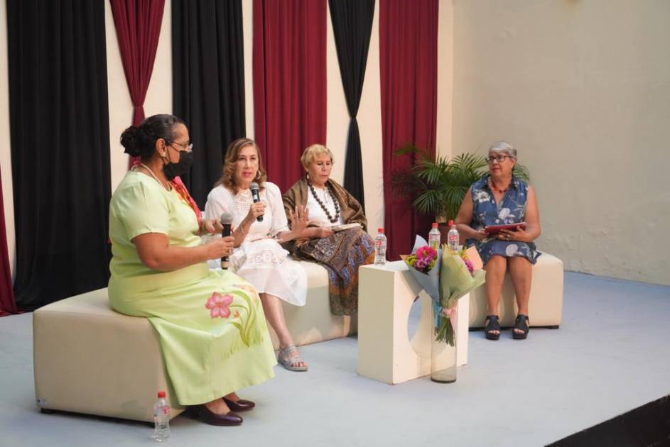 Las ponentes Marcela González de Rico, Verónica Poujol y Paola Calzada, tuvieron como moderadora a la maestra María Muñiz y compartieron su experiencia bajo la temática “¿Por qué y para qué escribir poesía?”, donde recordaron sus inicios y en ocasiones, leyeron algunas de sus creaciones.