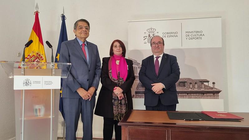 Tras la firma del acuerdo formal, Miquel Iceta i Llorens, ministro de Cultura y Deporte de España; José Andrés Torres Mora, presidente de Acción Cultural Española, y Marisol Schulz Manaut, directora general de la FIL Guadalajara, hicieron el anuncio la mañana del martes, en España.