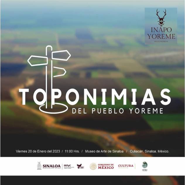 Este viernes a las 11:00 de la mañana se llevará a cabo la actividad Toponimias del Pueblo Yoreme, a fin de dar promoción, difusión y fortalecimiento a nuestra cultura Yoreme-Mayo, el Museo de Arte de Sinaloa.