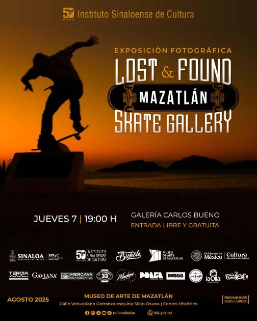 “Lost and Found, Mazatlán Skate Gallery”, una muestra fotográfica se inaugurará en la galería Carlos Bueno, el jueves 7 de agosto, a las 19:00 horas, con entrada libre y gratuita.