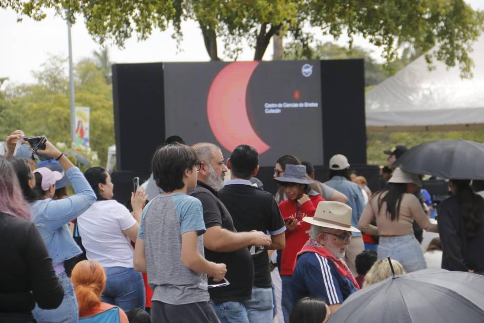 Decenas de personas alzaron la vista al cielo entrada la fase máxima del eclipse solar, la luna cruzó el Sol y en el jardín del Centro de Ciencias en Culiacán se vivió una pequeña fiesta matutina amenizada por música en vivo y una enorme pantalla cuyos ojos se hallaban a lo largo de Mazatlán y Estados Unidos.