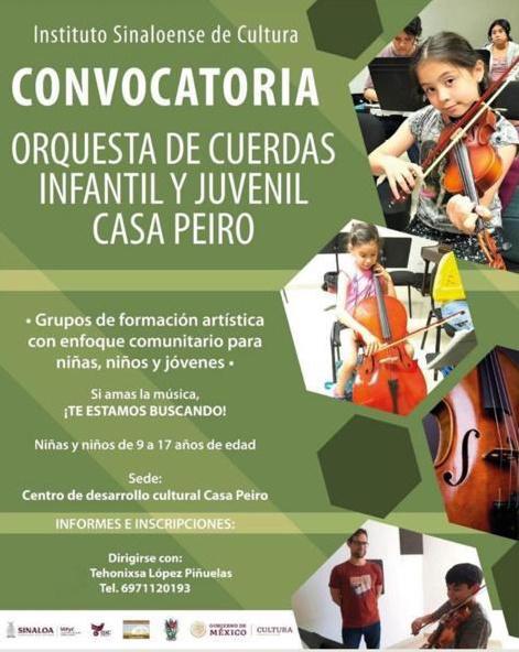 Eel Instituto Sinaloense de Cultura lanzó la convocatoria para invitar a niños y jóvenes a ser parte de la Orquesta de Cuerdas Infantil y Juvenil Casa Peiro.