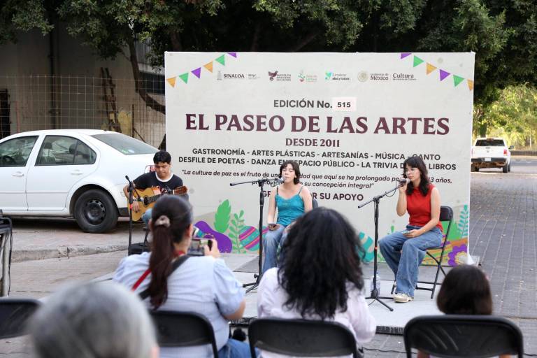 El programa se complementa con el dúo vocal y una guitarra Té de Manzana y Canela, integrado por Grethel y Valentina y, en la guitarra, Leonel, alumnos de la Escuela Superior de Música del Instituto Sinaloense de Cultura, que apoya este que es el único tianguis cultural de nuestra ciudad