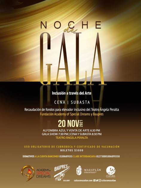 “Noche de Gala, Uniendo Fronteras”, es impulsado por el Gobierno de Mazatlán a través del Sistema DIF Municipal y del Instituto Municipal de Cultura, Turismo y Arte, sumándose los esfuerzos de la Fundación Academy of special dreams y Colectivo Bauprés.