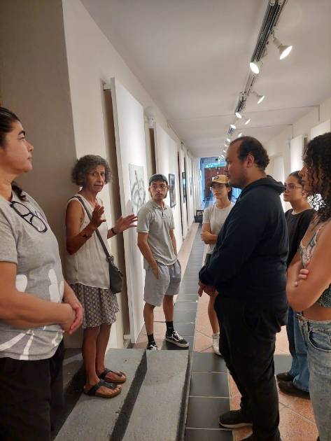 La artista plástica Lucila Santiago ofreció un recorrido guiado por su exposición “Papeles Migrantes” en la Galería Rubio, dirigido a los alumnos del nivel Técnico en Artes Plásticas del Centro Municipal de las Artes del Instituto de Cultura, Turismo y Arte de Mazatlán.