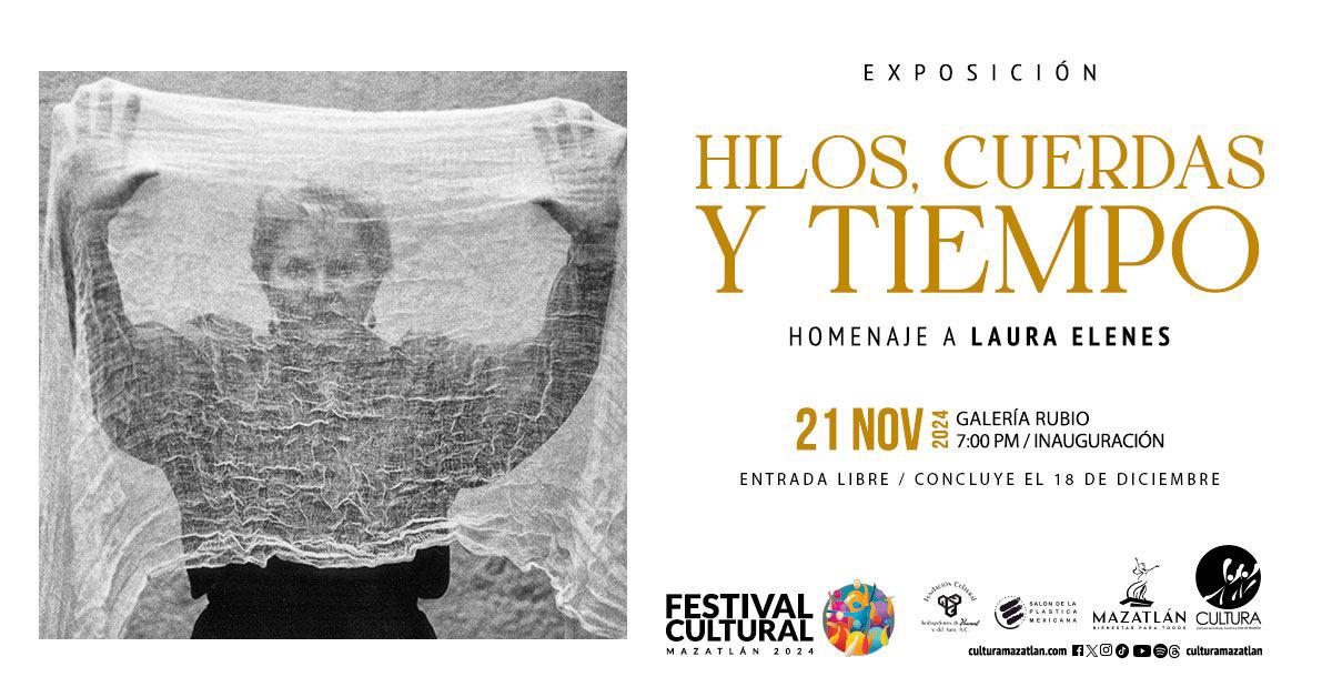A partir de este jueves 21 de noviembre y hasta el miércoles 18 de diciembre, la Galería Rubio abrirá la exposición retrospectiva “Hilos, Cuerdas y Tiempo”, homenaje a Laura Elenes, evento presentado por el Salón de la Plástica Mexicana y el Instituto Municipal de Cultura, Turismo y Arte de Mazatlán dentro de las actividades del Festival Cultural Mazatlán 2024.