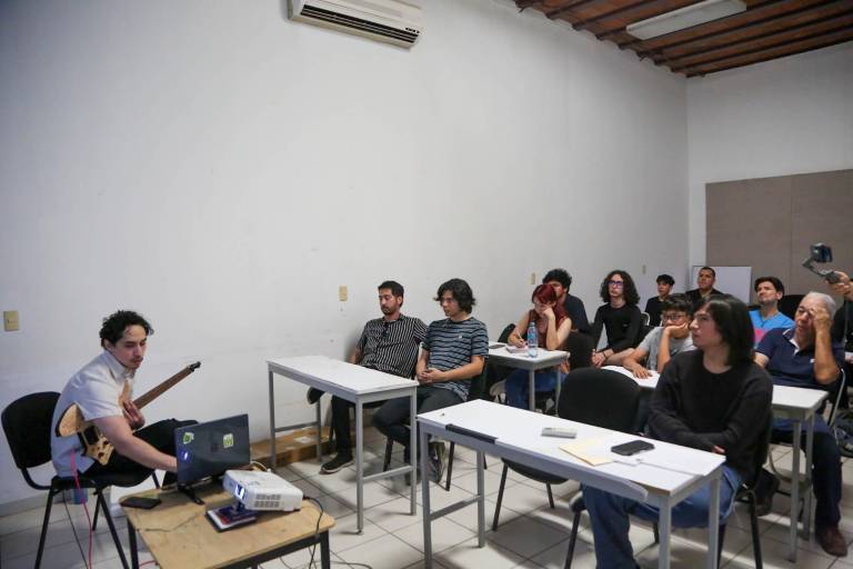La primera clase giró en torno a la guitarra y estuvo a cargo de Alan González, quien, apoyado en una guitarra y un proyector de pantalla, aportó datos, técnicas y recursos a la hora de abordar el género con este instrumento.
