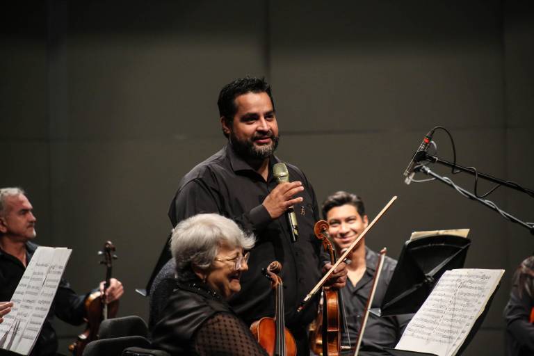 Samuel Murillo Pavia, director invitado y originario de Culiacán, es violinista de la Orquesta, y durante sus presentaciones como director invitado ha ofrecido diversos programas de música mexicana o de mariachi que han sido todo un éxito, con teatro lleno, y en su labor como compositor ha estrenado varias de sus creaciones de corte mexicanista con la OSSLA.