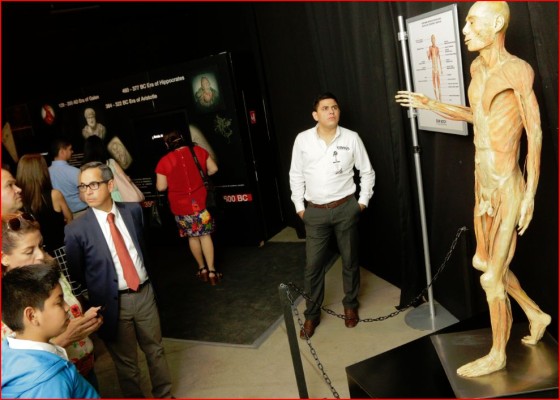 Doce cuerpos reales, 150 órganos, dos torsos, entre las diversas ramificaciones de venas que conforman el organismo, son exhibidos ante el asombro del público que se dio cita en la apertura encabezada por autoridades del lugar y los empresarios que apoyan la exhibición, entre los que están Gabriela Pineda, titular y guía de la expo, y Óscar Pérez Barros.