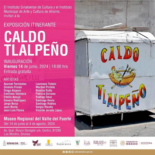 El próximo viernes 14 de junio se inaugurará abre la exposición colectiva Caldo tlalpeño, a las 18:00 horas, en el Museo Regional del Valle del Fuerte en Los Mochis.