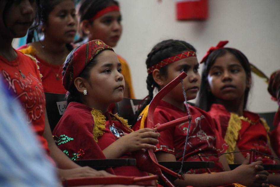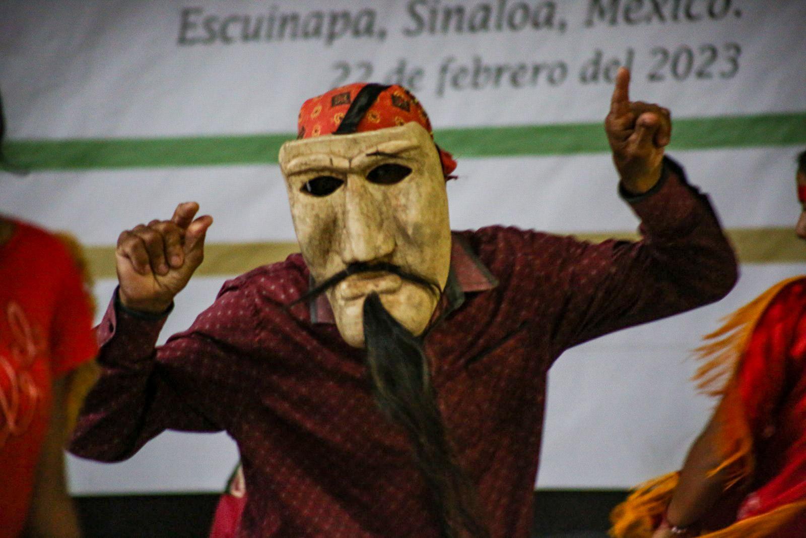 Luego, alumnos de la Casa de la Cultura ofrecieron una representación del “Mitote tepehuano” y “Sones mestizos” y de Sinaloa, para después transmitir el documental “Toponimias del pueblo yoreme”, a cargo de la maestra Nelsy Valenzuela.