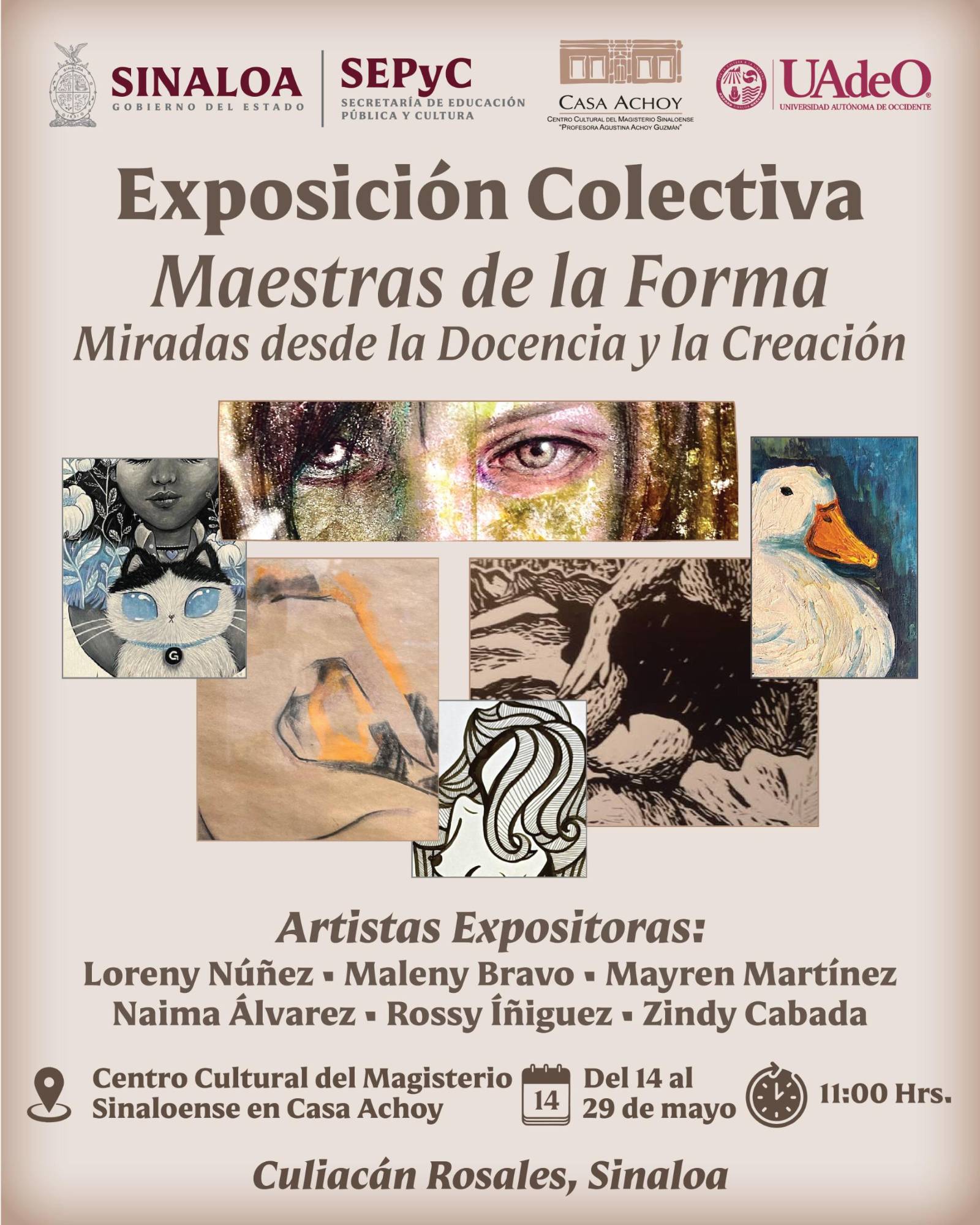 Con el propósito de difundir el trabajo en artes visuales que realizan las maestras de la UAdeO y como parte en de la celebración del Día del Maestro, Casa Achoy llevará a cabo la exposición colectiva Maestras de la forma, miradas desde de la docencia y la creación, en la que se presentarán alrededor de 20 obras realizadas por un grupo de maestras de las distintas áreas de la docencia.