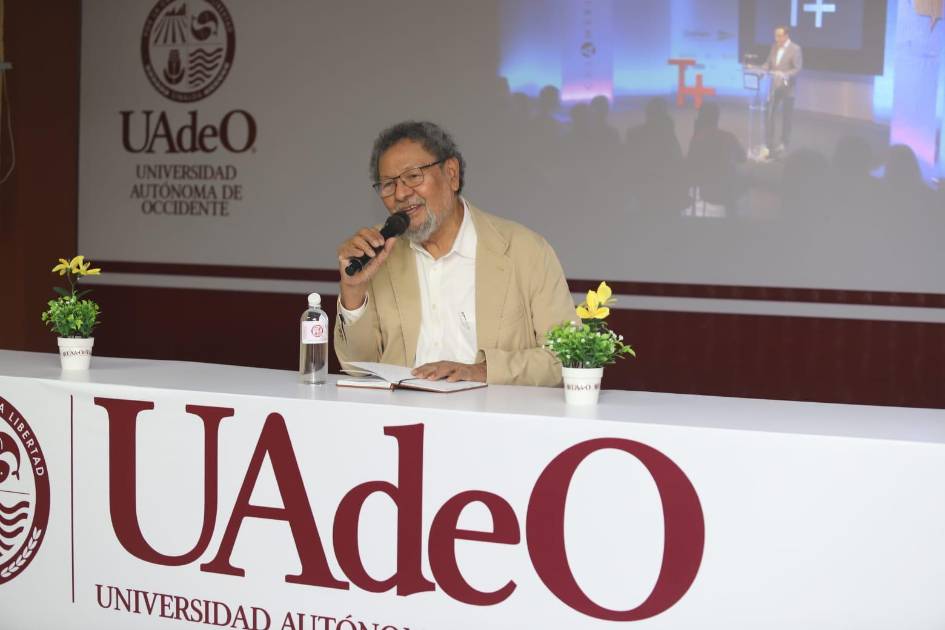 Como parte de una charla sobre el hábito de la lectura, el escritor sinaloense Élmer Mendoza compartió con estudiantes de la Universidad Autónoma de Occidente, Unidad Mazatlán, una reflexión cercana, crítica y motivadora sobre el papel de los libros en la vida de las personas.