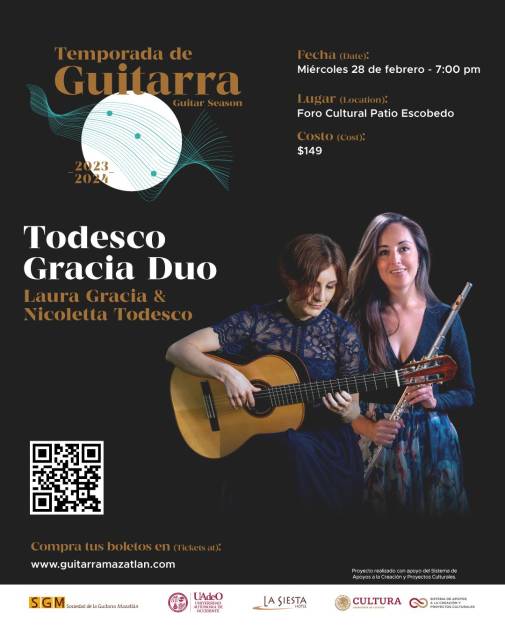 Por primera vez en Mazatlán, se presenta el dúo Todesco-Gracia, con Laura Gracia en la flauta y Nicoletta Todesco en la guitarra.