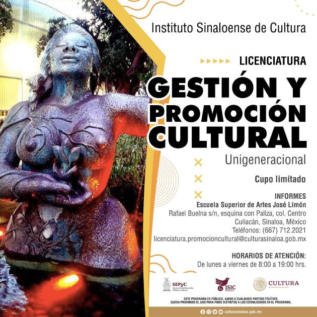 Este martes 1 de octubre inicia el Curso de Inducción a los postulantes e interesados en ingresar a la nueva Licenciatura en Gestión y Promoción Cultural, programada por el Instituto Sinaloense de Cultura, a través de la Escuela Superior de Artes José Limón, con el propósito de profesionalizar el trabajo de quienes están al frente de instituciones de cultura.