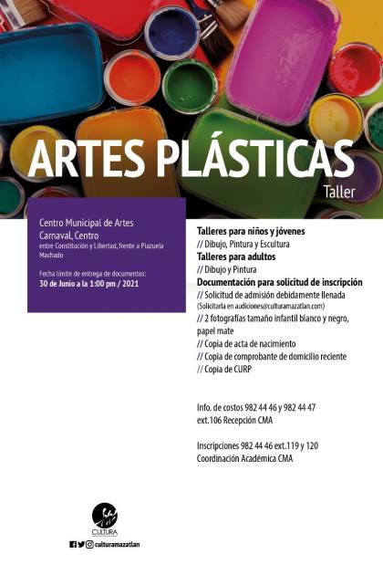 Será hasta el 16 de julio cuando se cierren los registros para ingresar a la carrera técnica y talleres en Artes Plásticas del Centro Municipal de Artes, así lo informó el Instituto Cultura de Mazatlán.