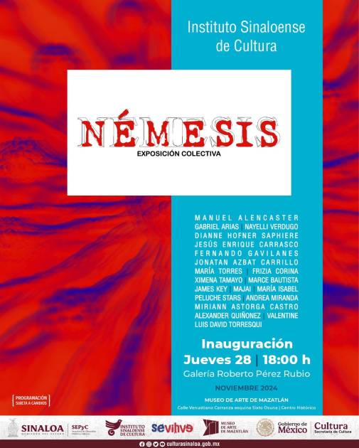 El Museo de Arte de Mazatlán presentará la exposición colectiva “Némesis”, exposición artística y activista organizada por el colectivo SE VIHVE, que busca transformar la percepción pública del VIH/SIDA y será el jueves 28 de noviembre, a las 19:00 horas, en la galería Roberto Pérez Rubio.