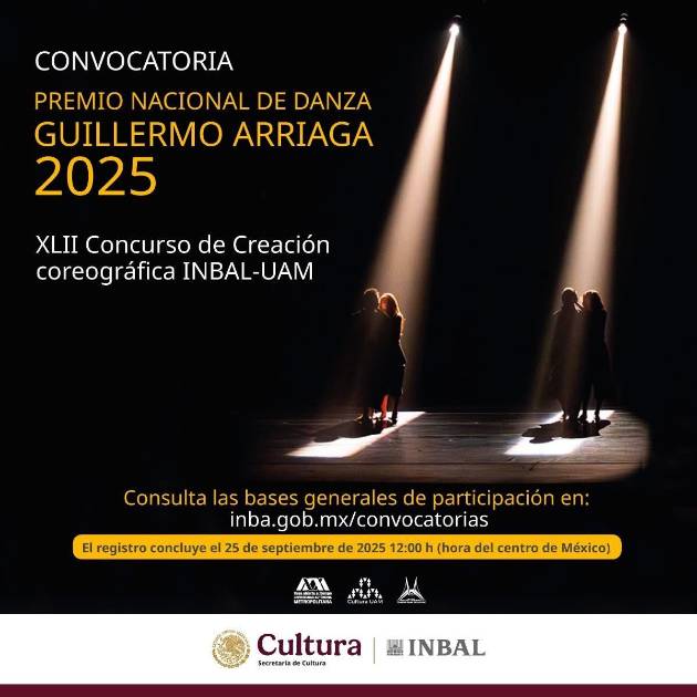 Profesionales de la coreografía, nacionales o extranjeros con un mínimo de cinco años de residencia legal en el país, podrán participar en la convocatoria por el Premio Nacional de Danza Guillermo Arriaga 2025, XLII Concurso de Creación Coreográfica Contemporánea INBAL-UAM.
