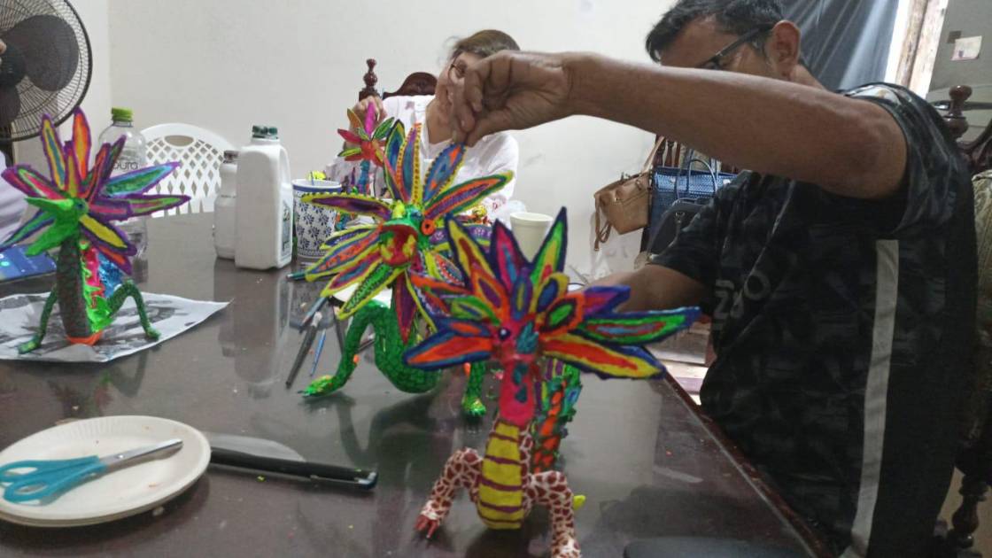 La fase dos consiste en la elaboración de catrinas y alebrijes con diversas terminaciones en acrílicos y lacas, hechos de alambre recocido, cartón, periódico, papel Kraft, engrudo, cinta masking, vinil, porcelana fría y más.