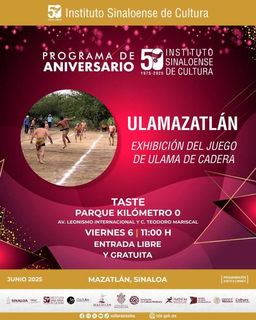 Con la participarán jugadores de Las Sábilas, La Mora Escarbada, Los Llanitos, Los Cedros y El Quelite, este viernes 6 de junio se llevará a cabo “Ulamazatlán”, una exhibición del juego de ulama de cadera, a las 11:00 horas. en el taste del Parque Kilómetro Cero.