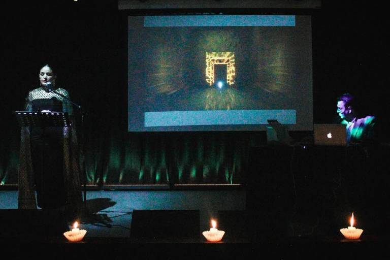 Invocaciones, creación del compositor y artista sonoro sinaloense Aldo Rodríguez, que se ha consolidado como una de las obras más singulares y trascendentes de la música contemporánea reciente se presentó en el Sheen Teather en Soho, Nueva York, con la soprano Eleonora Claps durante el Electroacoustic Music Festival 2025.