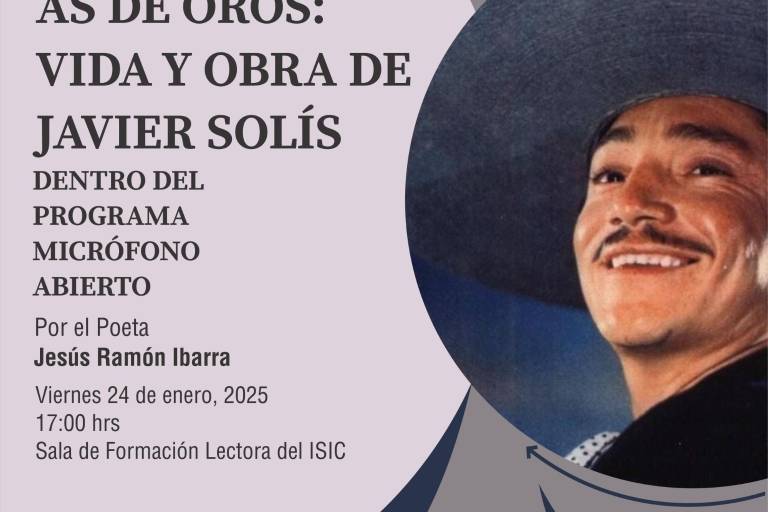 ‘As de oros: vida y obra de Javier Solís’ es el tema con el que el poeta sinaloense Jesús Ramón Ibarra, participará este viernes 24 de enero con una charla a las 17:00 horas, dentro del programa Micrófono abierto, de la Sala de Formación Lectora del Instituto Sinaloense de Cultura, con entrada libre para el público en general.