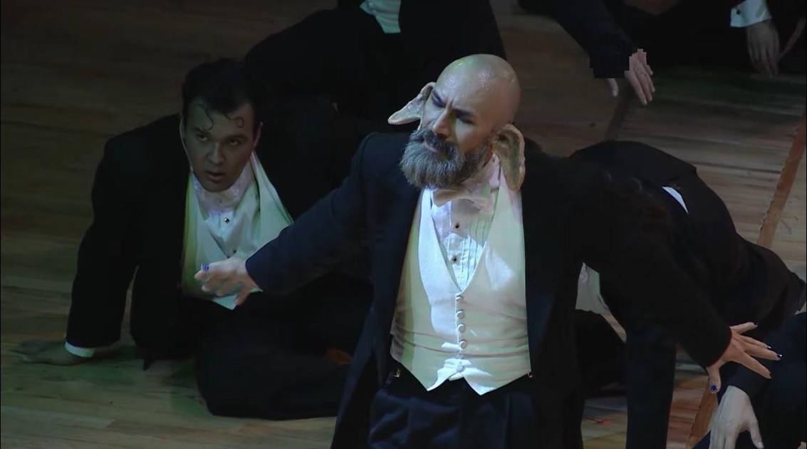 La puesta en escena fusiona música, coros, actores y bailarines. -