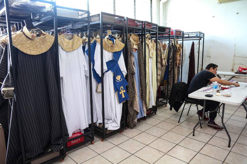 Una parte importante de esta puesta en escena, que fue estrenada en noviembre pasado en el Teatro del Bicentenario, de León Guanajuato, lo es sin duda el vestuario, el cual se trajo a Culiacán y en el proceso de ajustes a las prendas para los solistas y al coro que participan en este montaje, trabaja actualmente un grupo de especialistas comandados por el diseñador Emilio Rebollar, en las instalaciones del Instituto Sinaloense de Cultura.