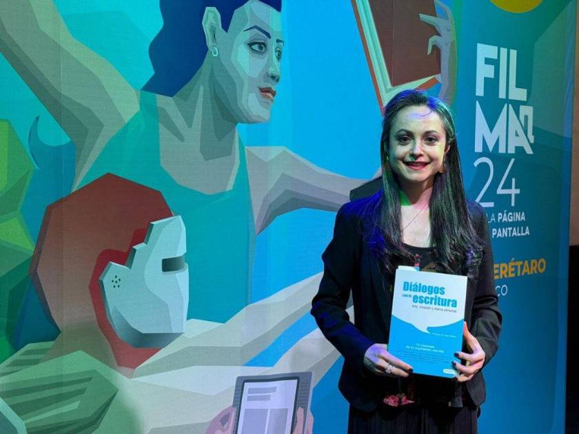 Durante la segunda edición de la Feria Internacional del Libro y Medios Audiovisuales (FILMAQ 2024), la escritora de origen queretano explicó que el libro finalista del cual es autora y compiladora, es un ensayo literario práctico y creativo.