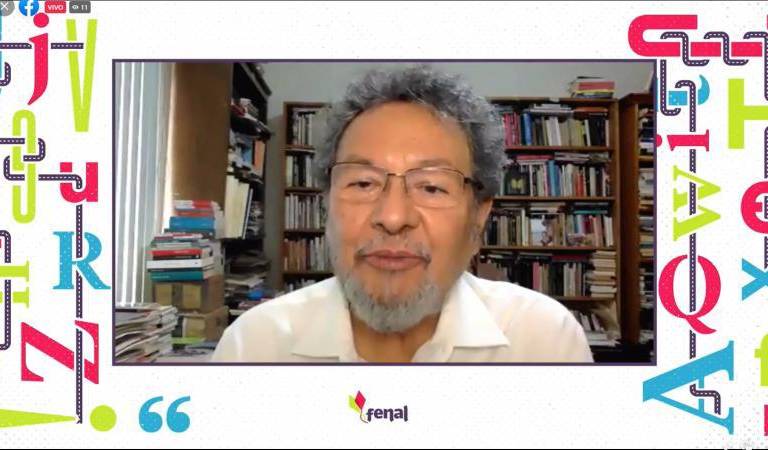 El autor desde su casa, en Culiacán, y en la feria Juan Pablo Torres, lo acompañó en la presentación, transmitida a través de Facebook.