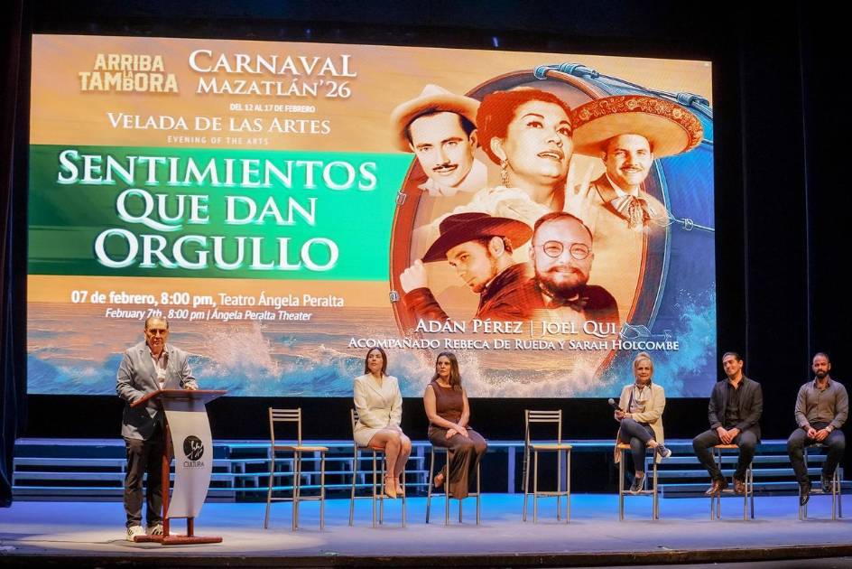 La Velada de las Artes del Carnaval Internacional de Mazatlán 2026 ‘¡Arriba la Tambora!’ que lleva como nombre ‘Sentimientos que dan orgullo’, tendrá lugar el sábado 7 de febrero en punto de las 20:00 horas en el Teatro Ángela Peralta.