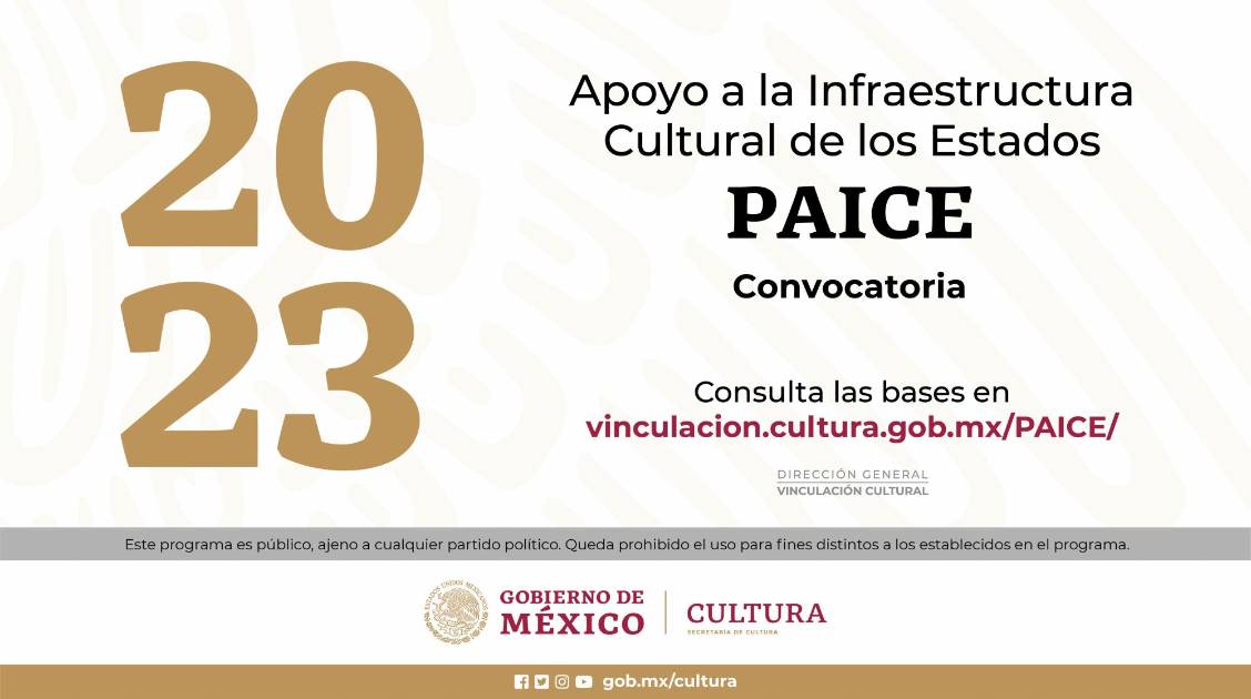 Las bases de la convocatoria y reglas de operación pueden consultarse a detalle en la dirección de internet: https://vinculacion.cultura.gob.mx/PAICE/convocatorias/ .
