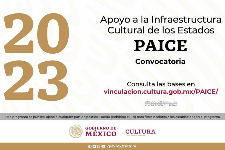 La Secretaría de Cultura convoca a las instituciones culturales, universidades y organizaciones de la sociedad civil dedicadas a la promoción y fomento de las artes y la cultura, a participar en el Programa de Apoyo a la Infraestructura Cultural de los Estados 2023,