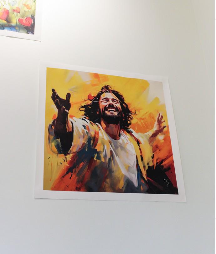 Del artista Iván Guaderrama, este retrato de Jesús lo representa como una luz que brilla en la oscuridad.