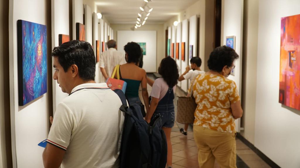 Un total de 28 obras en técnica mixta que reflejan distintos estados de ánimo en un estudio de introspección personal de la artista mazatleca, quien la tarde de esta viernes estuvo acompañada de sus familiares y amigos en el acto inaugural.