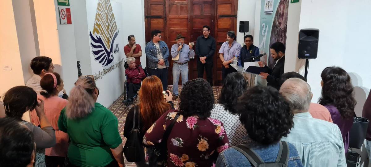 En representación de los artistas plásticos, José Uriarte Rodríguez y Fernando García Sánchez agradecieron a la UAS por abrir las puertas de un recinto tan importante para que su obra pueda ser apreciada por más personas.